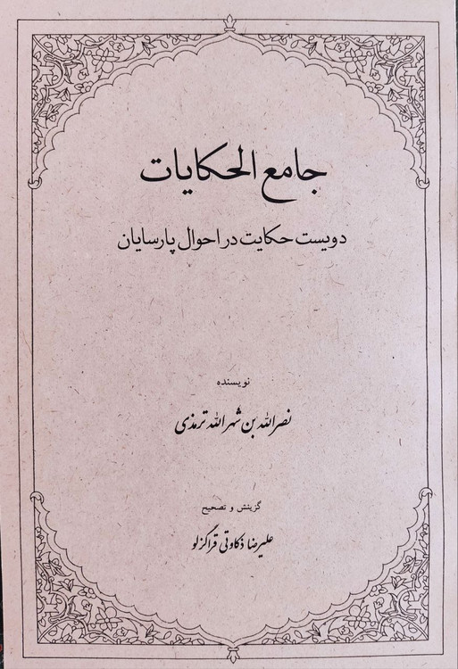#جامع_الحکایات، چنانکه از عنوان فرعی آن برمیآید، دویست #حکایت در احوال #پارسایان (#زاهدان و #صوفیان) است که محقق نکتهسنج، آقای #علیرضا_ذکاوتی_قراگزلو از نسخه خطی منحصر به فرد در کتابخانه #مجلس_شورای_اسلامی، برگزیده، تصحیح و آماده نشر کرده است. مصنف کتاب #نصرالله_بن_شهرالله_ترمذی از عرفای قرن نهم و دهم قمری است که تاکنون شرح حال مشخصی از او یافت نشده است. این کتاب در مسیر سنت پسندیده #تذکرهنویسی_عرفانی است که اوج آن را در آثاری همچون #تذکره_الأولیا #شیخ_عطار میبینیم.